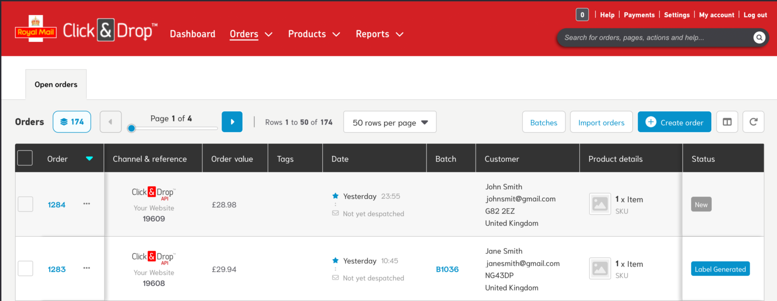 This solution works with both Royal Mail Click & Drop and Royal Mail OBA business accounts.